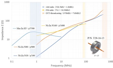 The performance of noise countermeasures against electromagnetic waves generated by power converters is affected by the magnetic permeability and impedance of soft magnetic materials.